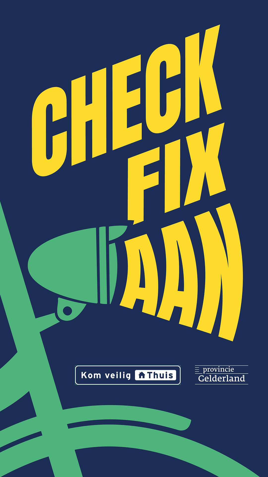 Met de Gelderse aanpak Check.Fix.Aan stimuleren we jongeren van 12 t/m 24 jaar en hun ouders via social media en acties op straat de fietsverlichting tijdig te controleren (check), te repareren (fix) en aan te zetten (aan) in het donker. Zo komt iedereen veilig naar huis. De aanpak in Gelderland sluit aan bij de landelijke campagne AAN in het donker.